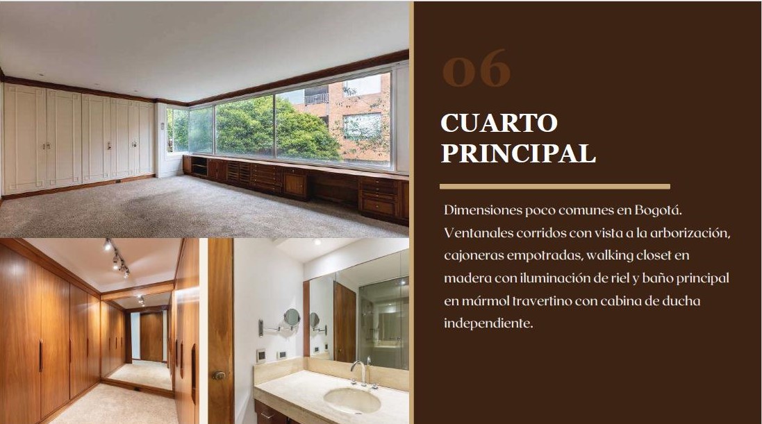 - Baño principal en mármol travertino, con cabina de ducha independiente