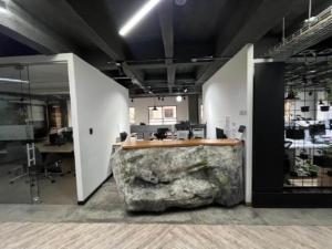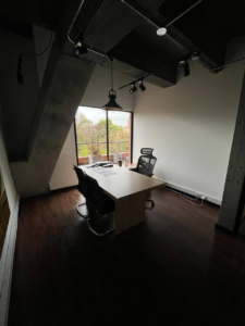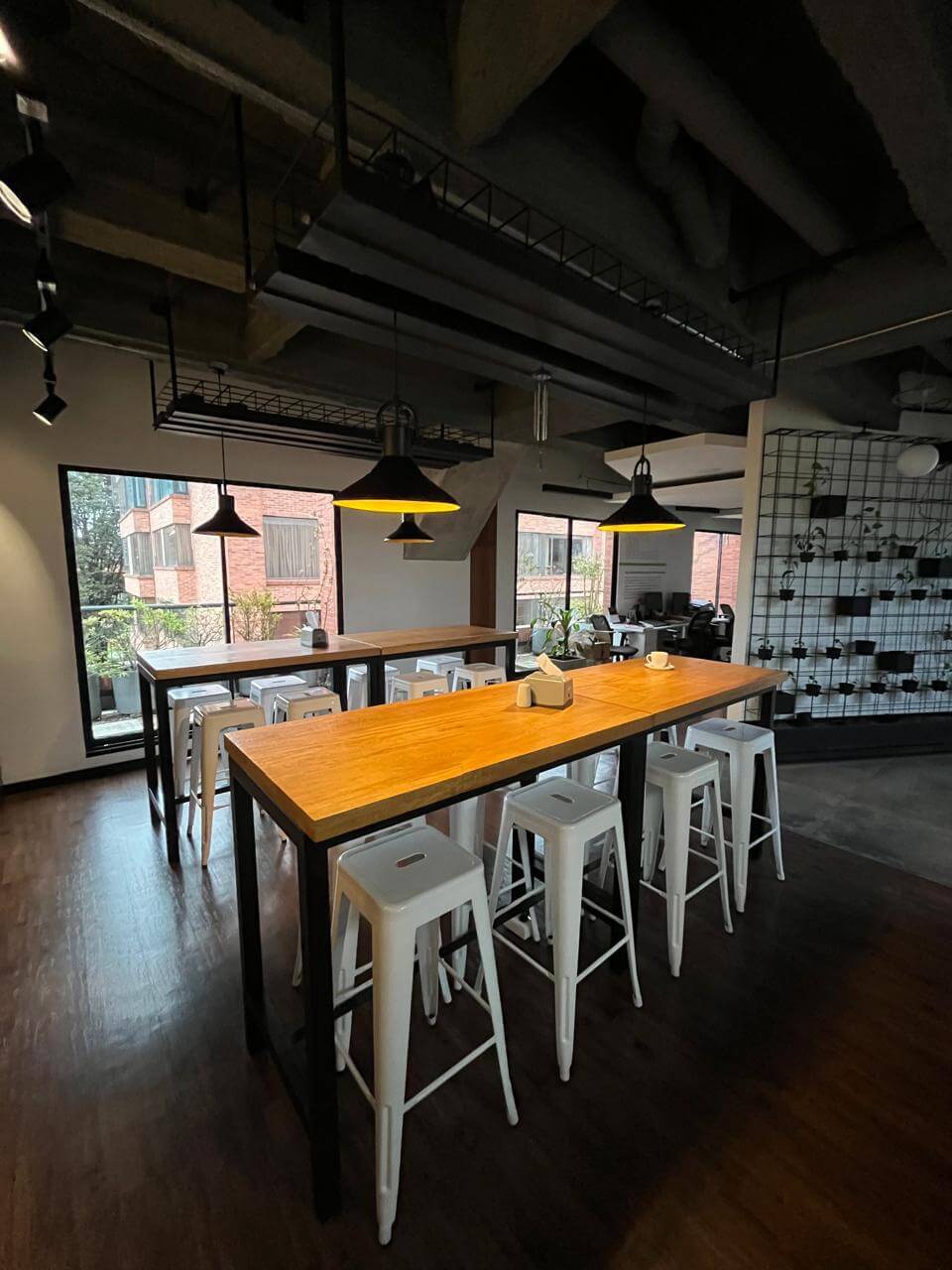 La oficina cuenta con una amplia terraza panorámica, ideal para espacios de descanso, reuniones informales o eventos corporativos con una vista privilegiada al parque.
